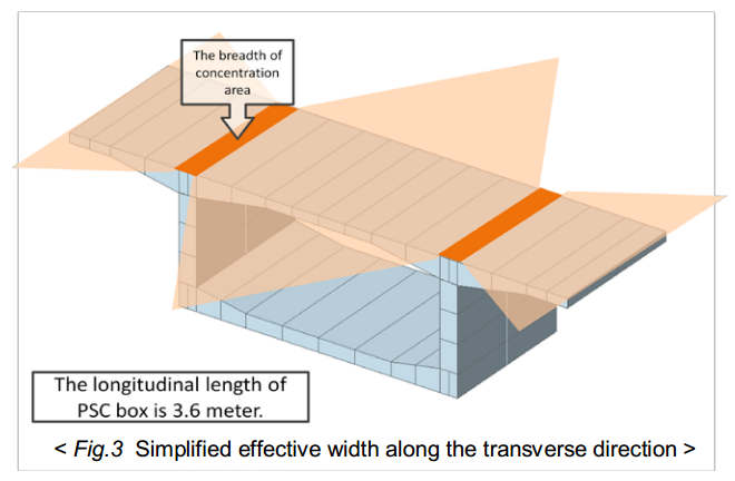 Q1. I am working with the "Transverse analysis model wizard" of midasCivil. I already did the model of the bridge I am working on, using PSC elements. The girder is a simple box which has to be analyzed longitudinal and transversely for its subsequent design. As far as I could see, both analysis (long. and trans.) are made separately by midasCivil, then when I use the "Transverse analysis model wizard" it creates a 2D model of the transverse section selected. At this point, I am having issues with the definition of the moving loads. The input data is simple; but not very good explained in the on-line manual. For instance, when defining the vehicles, there is a value "Distribution width W:" I don't know what it refers to. Additionally, I need to define 3 vehicles and get the involvement of these 3 loads; but it's not possible to define more than 1 vehicle. On the other hand, I am working with the load cases LM1, LM2 and FLM2 (Lorry 3) of the Eurocode. Consequently, I don't know how to define these load cases for the analysis of 1m long of the transverse section in midasCivil. I would like to have more detail explanation and an example of application of these loads. In the same way, I did a hand calculation using Homberg charts and FEM to get the evolvement of the moments in the transverse section, but the results are completely different from those given by midasCivil. I attach the file I am using with the moving load LM1 of the Eurocode. I am not sure about if I did it okay because I assumed many things to define the loads. It suposse to be applied max. 2 lanes of loads, the first one using a load for each wheel equal to 150 [kN] and the second one using a wheel load equal to 100 [kN]. Please check the Eurocode 1991-2, pag. 35.