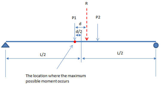 Q1. Two wheel loads with the same amount of loading passes along the simple span. After performing moving load analysis, the result of bending moment shows that the maximum bending moment does not occur at the center of span. I do not understand why?