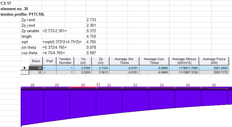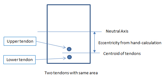 Q2. We are comparing tendon primary results for a bridge. The bending moments produced by the pre-stressing tendons on the centre part of the beam do not match with our hand calculations. We found out a small difference on the centre of gravity of the beam that leads to a significant bending moment variations. Could you please explain why the centre of gravity of the section (concrete + pre-stressing steel) does not match with our calculations?