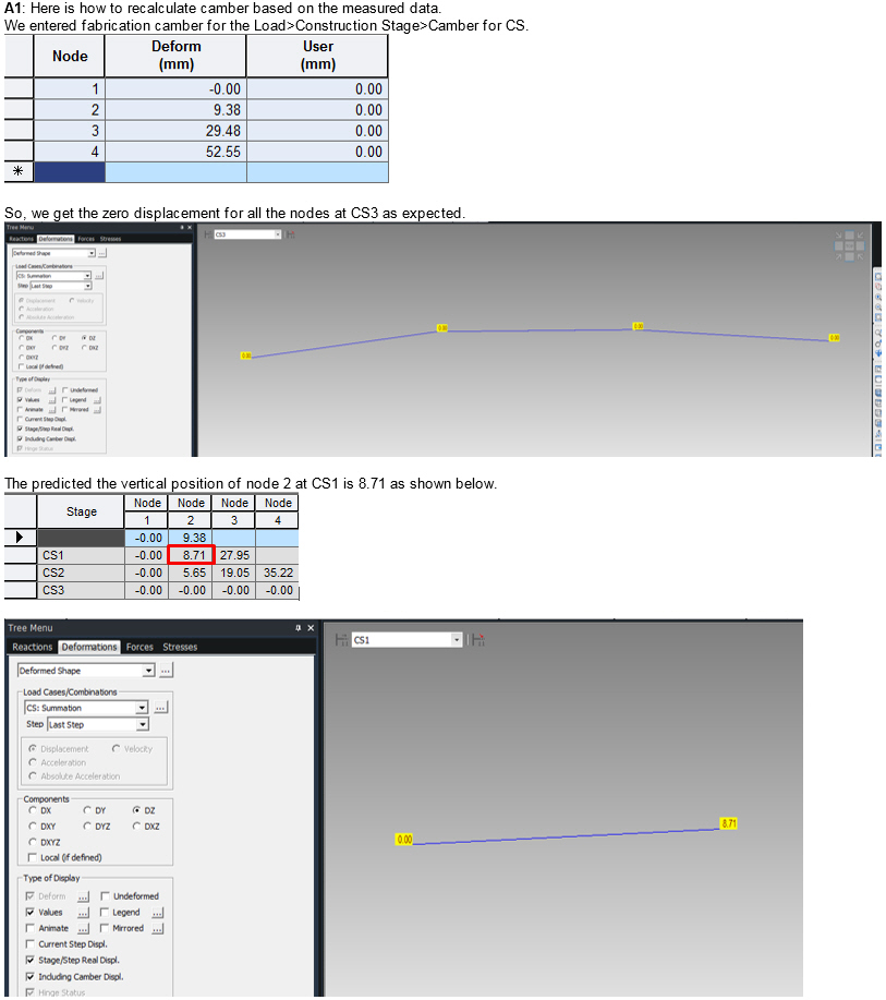 Q1. I got the camber using General Camber. Suppose measured camber during actual construction is different from the predicted camber by software. How can I adjust the error?