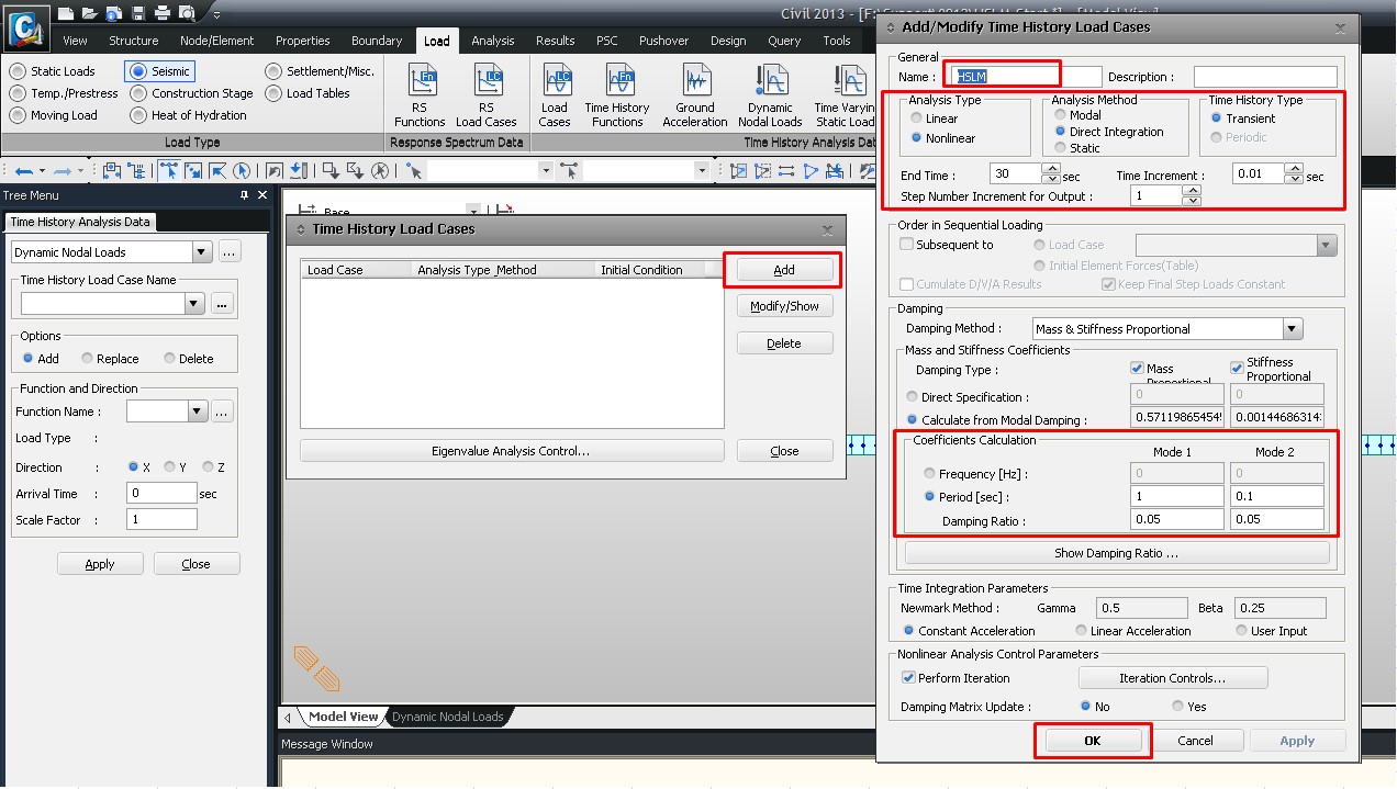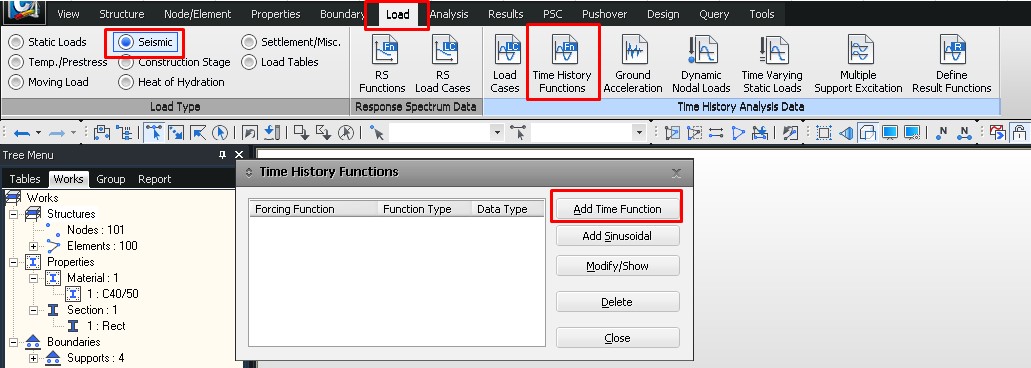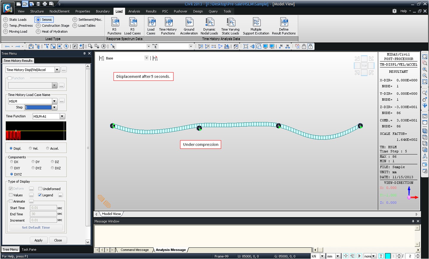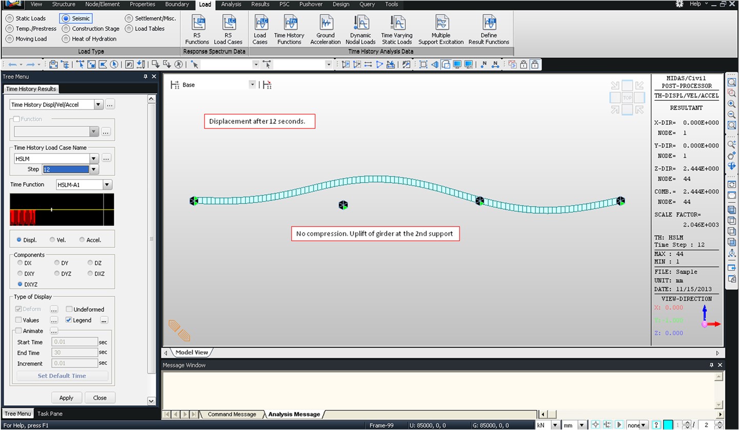 Q1: How can I perform train-structure interaction in midas with the effects of the compression-only bearing? Could you show me the whole process, i.e. defining train loads, train speed?