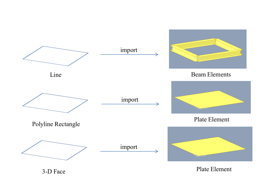 Q1. In what form is the line, polyline and solid model in AutoCAD imported into midas? Is line imported as a beam and so on.