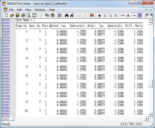 Scale Factor Apply the scale factor to the effective width calculated. If the effective width multiplied by the scale factor is larger than the total width, then the total width is used. Consider the Variation of Centroid Check on whether to reflect the translation of neutral axis due to considering the effective width. Calculated result is produced as z_top & z_bot Scale Factor in the Effective Width Scale Factor Table.
