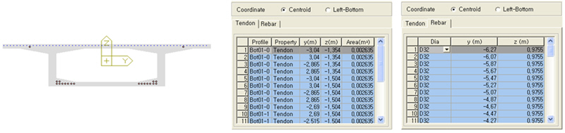 Centroid : Display the locations of tendon and reinforcement with reference to the Centroid of the section.