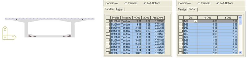 Left-Bottom : Display the locations of tendon and reinforcement with reference to the Left-Bottom.