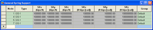 Enter or modify general nodal spring stiffness data in a spreadsheet format Table.