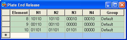 From the Main Menu select Boundary > Tables > Boundary Tables > Plate End Release. |