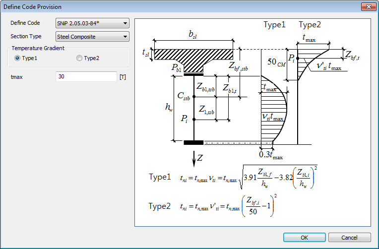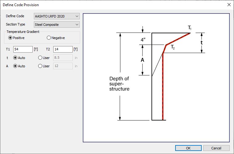 If a section for which a temperature difference is considered is not a rectangle, the section should be transformed into an equivalent rectangular section, which produces the identical moment due to the temperature load. And then the user needs to input the width and height of the equivalent rectangular section.