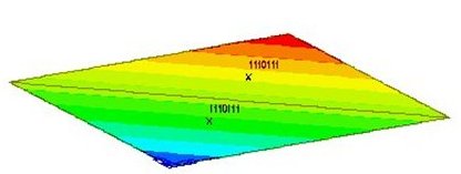 Plate stress contour can be displayed using the value at the element center instead of element node. Plate stresses at the nodes are determined by the linear interpolation of Gauss points, which often leads to stress exceeding yield stress. The center values will rarely exceed the yield stress. |