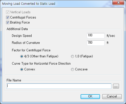 Centrifugal force due to vehicle load in the horizontally curved bridge can be generated as a static load by selecting "Centrifugal Forces" option.