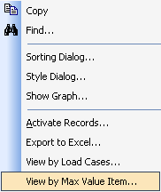 From the Main Menu select Results > Result Tables > Beam > Force. Right-click the mouse over the table and click the View by Max Value Item to see the concurrent forces. |