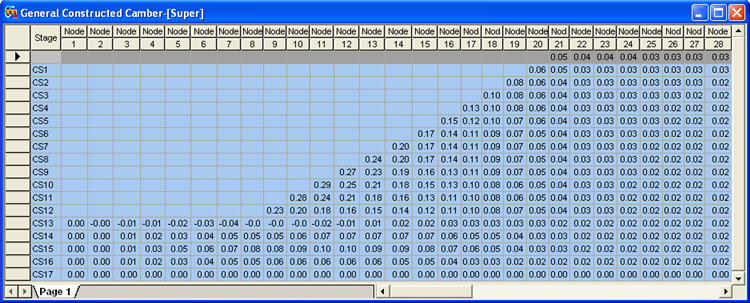 Camber table is produced for the Structure Groups designated in General Camber Control. |