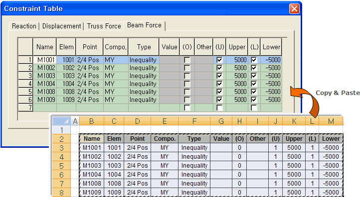 Factor: Calculated unknown load factors Value: Resulting values of the constraints Upper Bound: Upper bound of each constraint Lower Bound: Lower bound of each constraint