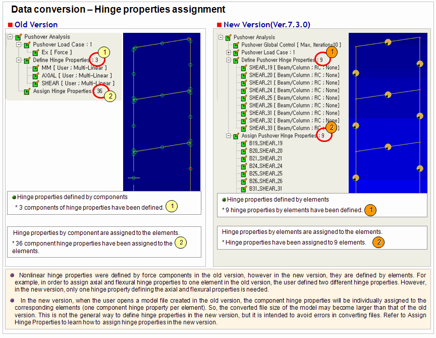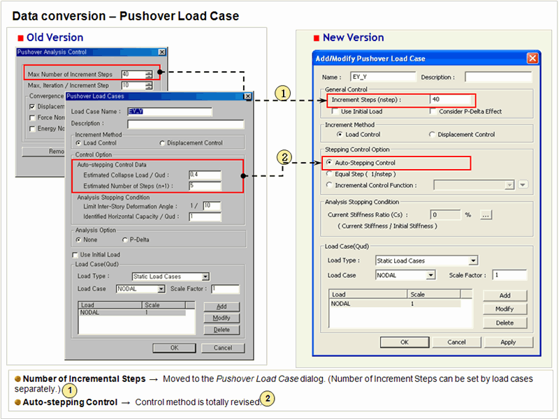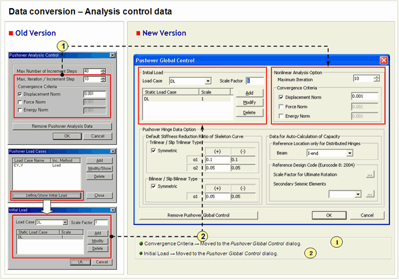In the New Version, the pushover analysis is fully revised and updated from pre-/post-processing to solver. The model files created in the old version can be opened in the new version and are automatically converted into the new input format.