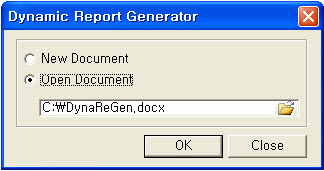 Click Tools > Dynamic Report Generator from the Main Menu. New Document : Generate a new report. Open Document : Open the pre-generated report.