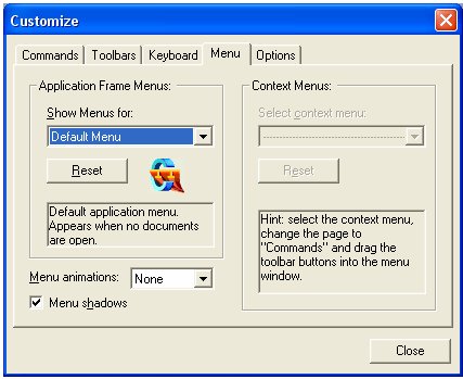 Icon Menu Customizing Customizing the Main/Sub Component Toolbar and showing/hiding Icons can be accomplished using Tools > Customize > Customize.