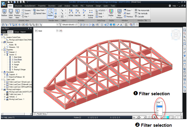 ) Filtering in the Status Bar to select the elements corresponding to the Filter conditions.