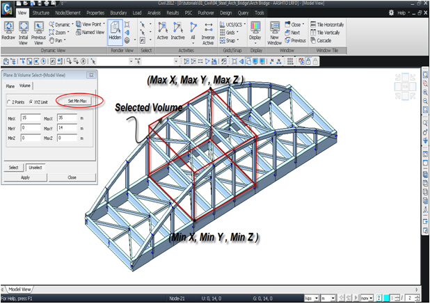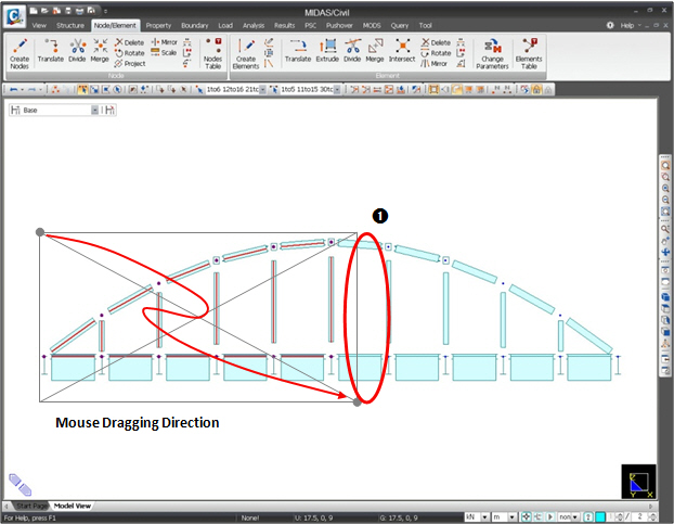 In midas Civil, selection of nodes and elements during the data entry process of creating or assigning nodes and elements or attributes (boundary conditions, loads, etc.) is frequently repeated throughout the entire modeling process. Select Functions select the desired nodes or elements in the Model Window or remove the selection. Select provides a wide variety of powerful selection functions that will simplify and expedite modeling processes irrespective of the complexity of the structure in question. In conjunction with Activities, which selectively displays the desired parts of the model in the Working Window, the select functions provide the utmost modeling environment. All the select functions are effective only on the nodes and elements activated by the Active feature. The selected nodes and elements are represented on the screen as follows: Node Line Element Plate Element Solid Element |