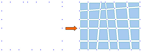 If Create Intersecting Nodes is selected and even if there are no interior nodes in the created plate and solid elements, nodes are created at the intersections of the lines extended by the exterior nodes and plate or solid elements are subsequently created.