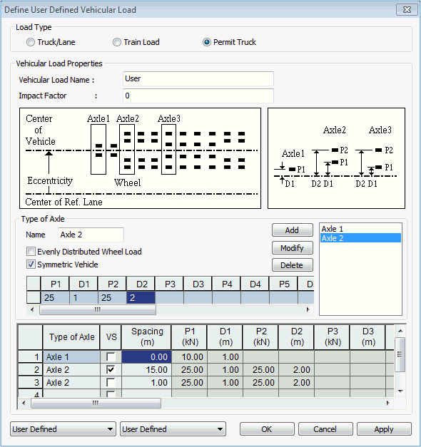 a vehicle load to be modified in the dialog box and click .
