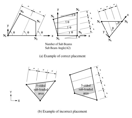 The polygonal shapes of sub-loaded areas formed by the sub-beams and existing beam elements can be only triangles or quadrangles.