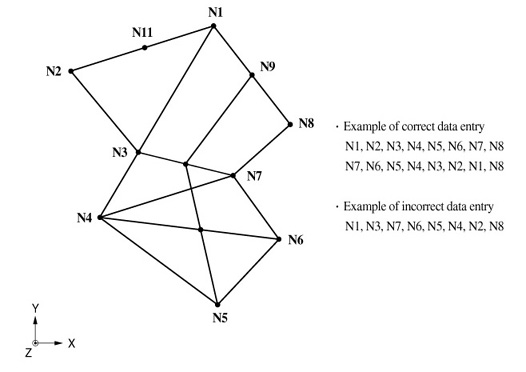 The corner nodes can be consecutively entered as shown in <Fig. 6>. Non-corner nodes such as N9 and N11 need not be defined.