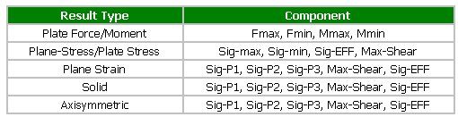 ☞ CB1 = LC1 + LC2 a. Principal stress: Add the stresses of all load cases for each stress component and then recalculate the principal stress based on the sum of the stresses for each stress component. b. Sig-EFF & Max-Shear: Calculate based on the principal stress calculated from above (*Note: The principal stress, effective stress and maximum shear stress of CB1 are not calculated simply by summing the results of LC1 and LC2.)