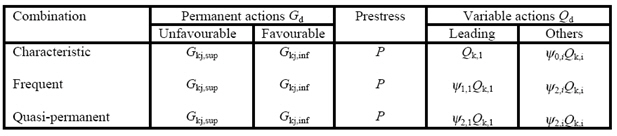 load is considered as Accompanying Variable Action 2. Serviceability Limit State For serviceability limit states, load combinations will be automatically generated based on Table A2.6 in EN1990:2002 Annex A2. EN1990:2002, Annex A2, Table A2.6