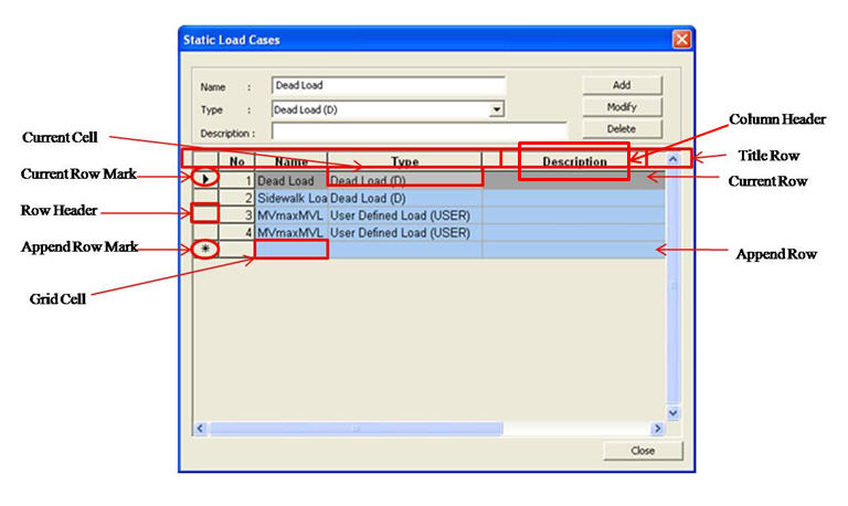 Grid Cell: Rectangular space used to enter/output contents in the table