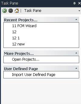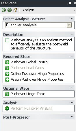 Task Pane is composed of two items - a Task Pane displaying the recent project file list and Analysis displaying checklist for each analysis. Task Pane