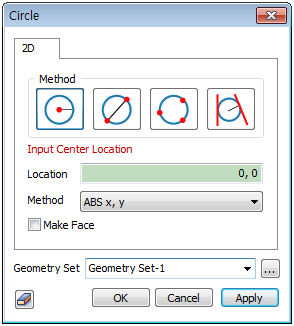 There are 4 ways to draw a circle. The points used in each method can be specified directly by clicking on the workplane of the work screen.