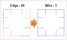 After the operation is performed, a single wire remains and the selected edges are deleted.