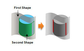 Selecting two shapes create an edge type line at the intersection. If the intersection is a single edge, a single edge is created but if there are more intersections, a compound shape consisting of edges is created.