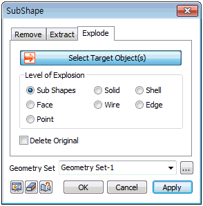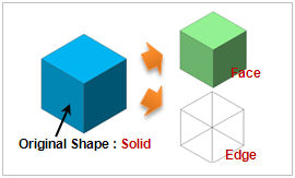 The disassemble level can be selected from [Sub Shpes], [Solid], [Shell], [Face], [Wire], [Edge] and [Point].
