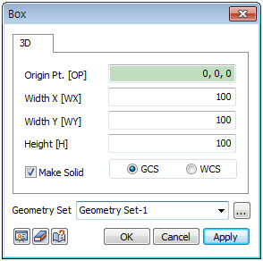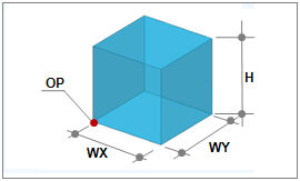 Create a box from the Origin Point(OP), Width X(WX), Width Y(WY) and Height(H).