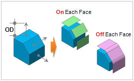Check the [Round Extended Bound] to connect any disconnected offset faces of the object using curved faces. The offset distance (OD) is the radius used for the fillet.