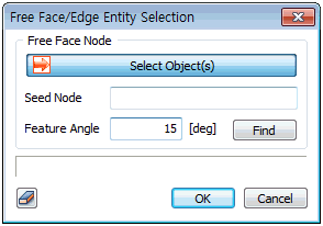 For [Free Face Node], select a free face node and all points that make contact with the node-containing element at an angle smaller than the specified angle are selected. Press the button to select the reference node, target element and feature angle.