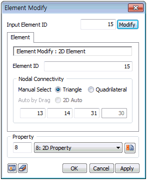 Edit Geometry through changing node information or change property. This function is useful when modifying details of the specific element.