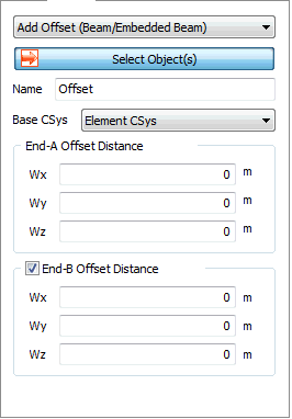 Define the offset distance by considering the sectional properties (shape) of the structural element. When defining the properties, the offset can be set within the boundary of the section shape, or outside the boundary using the extra features of offset. The offset is the eccentric distance between the position of the geometry shape (line), needed to create a structural element, and the reference axis, where the loading is applied and the results are calculated. It is mostly used to express the connection between structural members or the combined section of 2 meeting members.