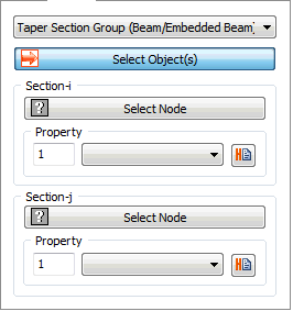 Members designated to a tapered section are grouped and calculate the section size automatically to define a constant tapered section regardless of the divided state of the elements. Firstly, select all elements that configure section changing area, and select the node at the beginning and the end of section changing area into the node of section i and j respectively. The tapered section is calculated by section property assigned to section i and j. The complex section changing area can be modeled quickly without creating the property of tapered section as the number of elements within section changing area.