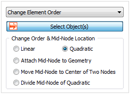 Add or delete the nodes between a 1D element to change it into a higher order or lower order element. Changing the position of the middle node to the start or end point for high order element can create an arbitrary middle node on the geometry shape. A 1D high order element can be divided into 2 low order elements with reference to the middle node.