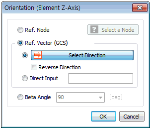 Reference Node: Select the reference node for the sectional direction of the 1D element. The element Z coordinate direction is set with reference to the selected node.