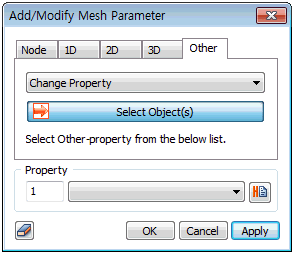 Use to change the assigned other properties of an element. It is applied to spring, link, interface affiliated elements and select the element to define a fitting property.