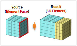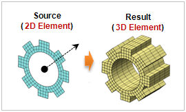 <2D element->3D element extrude> <Element face->3D element extrude>