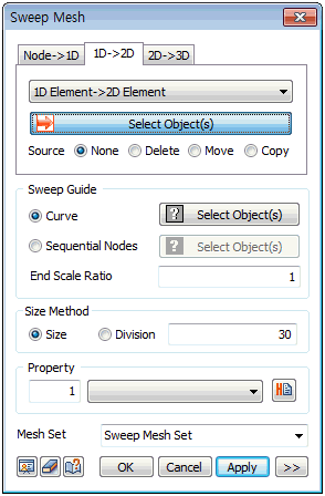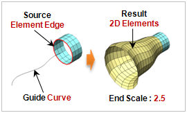 <1D element->2D Sweep extrude> <Element edge->2D Sweep extrude>