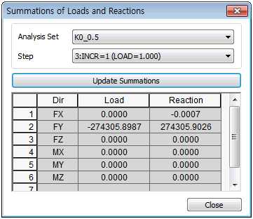 Select an analysis set and step, and click the Update Summations button to automatically calculate and display the sum of reactions.