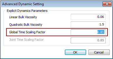 Analysis Case >> Subcase Control >> Dynamic >> Advanced Dynamic Setting... RemedyThis error is generated when the material density is missing or when the elements undergo severely deformation. First, check the material property data. Next, check the analysis results obtained thus far. If excessive deformation of elements is identified, reduce the time scaling factor. Also, since the severe deformation of elements is related to the element shapes or the magnitude of the loads, check the corresponding data.