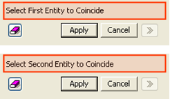 <Instruction> 1. After checking the message of Select First Entity to Coincide, select First Entity. 2. After checking the message of Select Second Entity to Coincide, select Second Entity. Note 1. If you choose Edge. it will move to next step automatically.