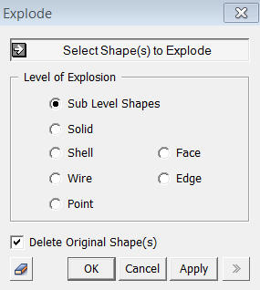 shapes to be exploded. Level of Explosion Specify the Level of Explosion.