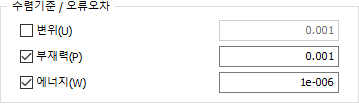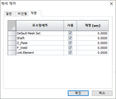 각 해석 종류 별로 추가 설정하는 제어 옵션 구분되어 있으며 자세한 사항은 아래 테이블과